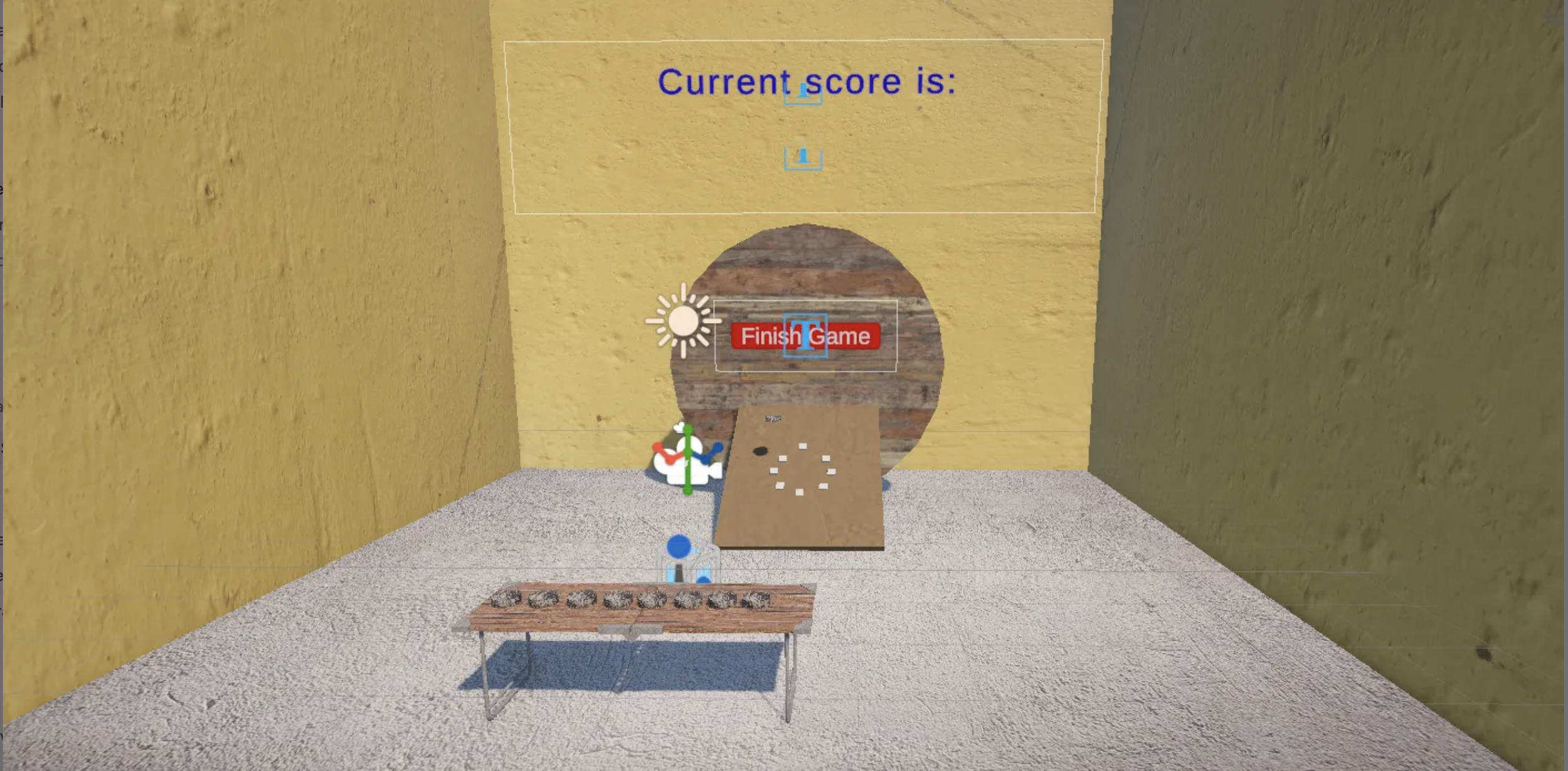Inspired by firsthand Tejo experiences and cultural research, I began prototyping the arena environment in Unity, modeling a regulation Tejo board and setting up XR interactables. From there, I refined mechanics like: