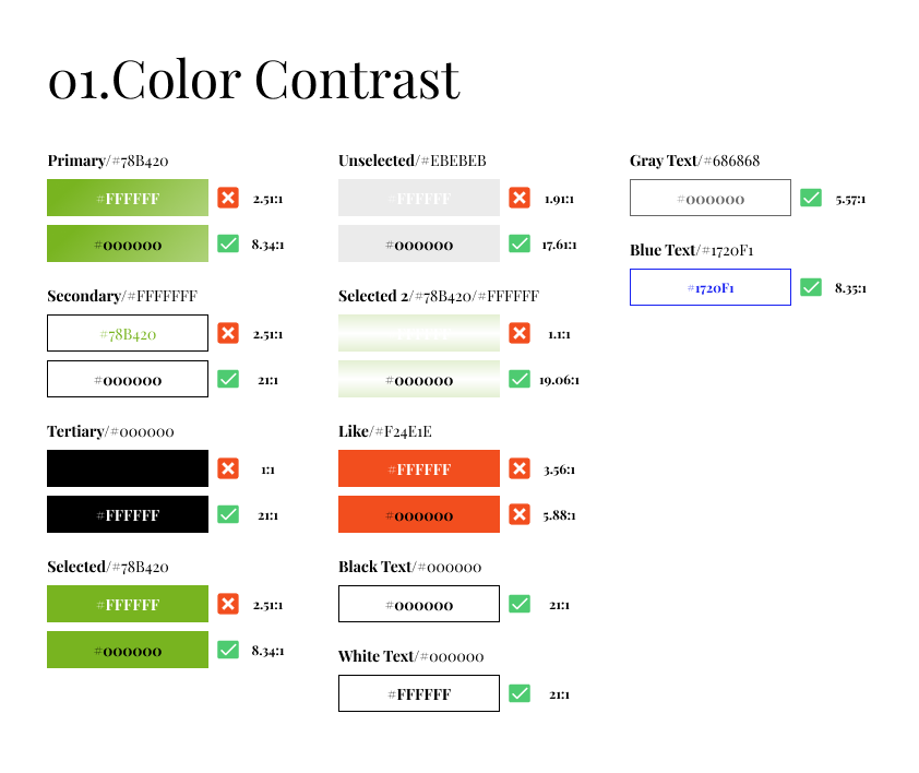 Maintaining Branding: The client wanted to keep the main colors from the previous website, in order to keep brand awareness. This was challenging because the green they used did not pass accessibility standards for text.