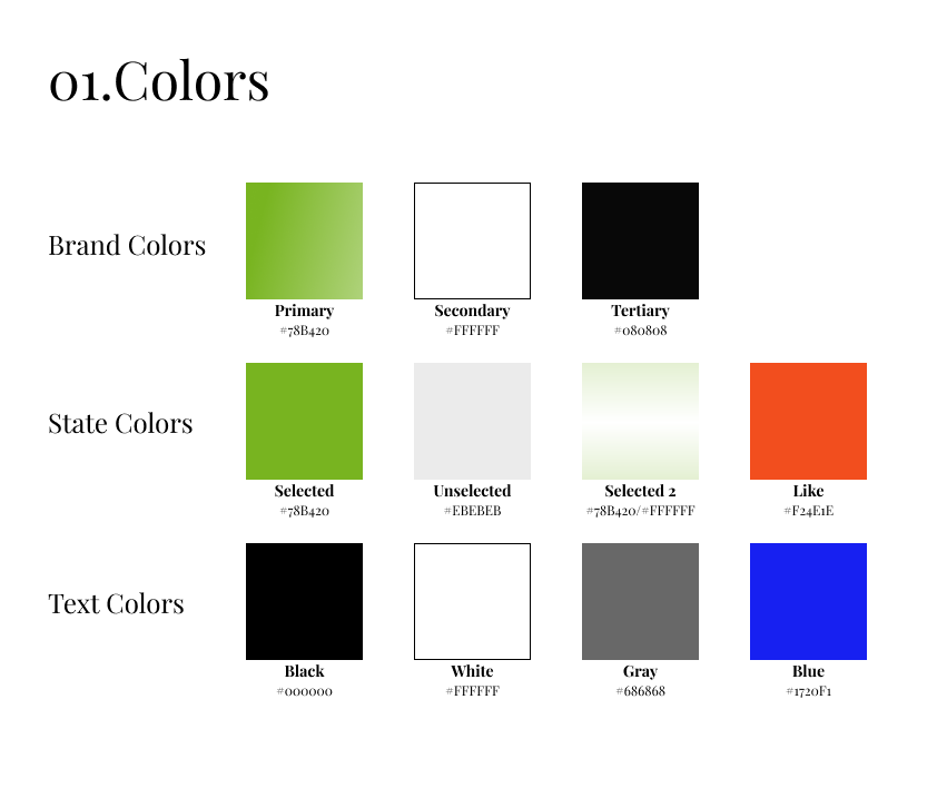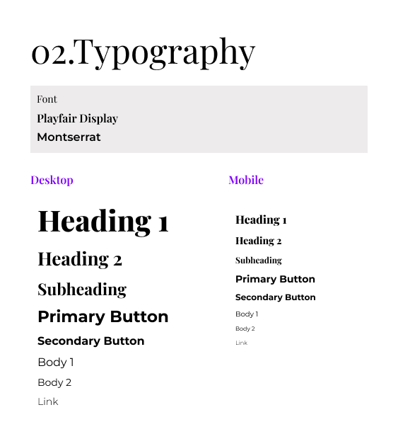 In order for both the prototype to be cohesive and uniform throughout the entire design, I created a detailed style guide, with the colors, the fonts, the components and the iconography to be used throughout the site.