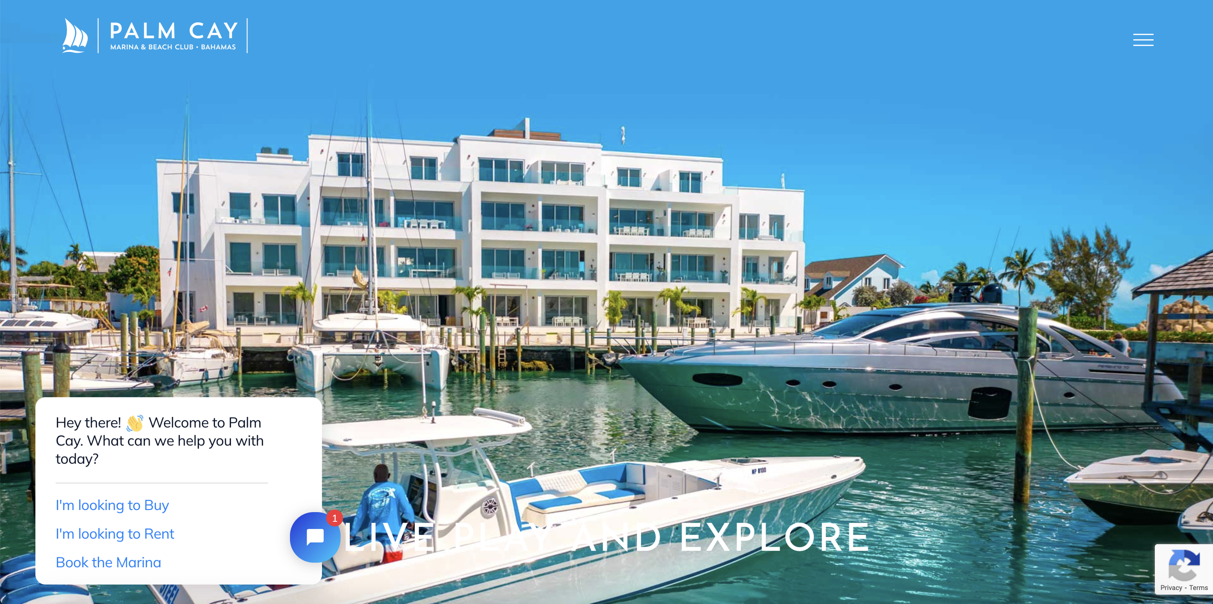 Palm Cay is a website for a property in the Bahamas. This website showcases a clean and aesthetic home page. They showcase a beautiful hero image that displays not only the property but the lifestyle that they are selling with the property. Furthermore, they decided to increase the minimalistic look by making the menu a hamburger menu. They also implemented the use of an AI chatbot that allows the user to chat with a bot before visiting the property and getting information on the property from the comfort of their home.