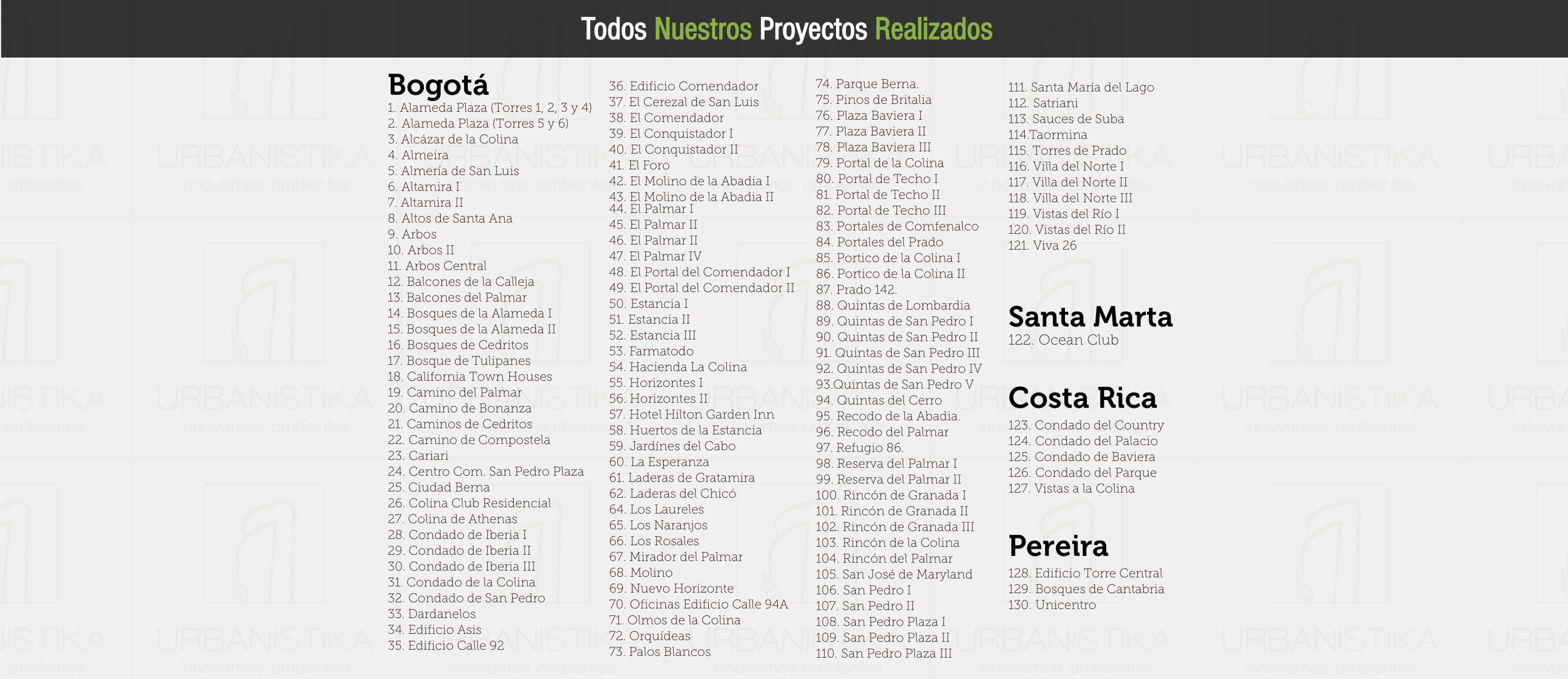“Urbaniastika is a construction company based in Bogotá, Colombia. The company specializes in constructing apartment communities across Colombia, Costa Rica and Mexico.”